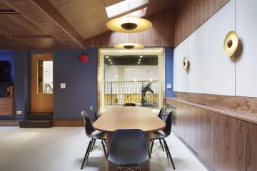 The stunning design, developed by Threefold Architects, showcases the history of the building whilst creating new collaboration and creative spaces, delivering on the studio's commitment to providing high-quality facilities for artists.
